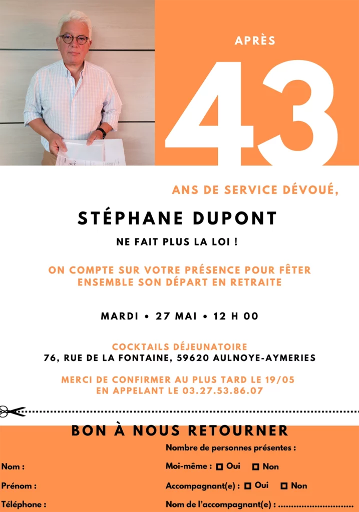 La communication autour de l’événement a également fait partie de mes missions : envoi des invitations par mail aux collaborateurs le 15 avril, avec une relance effectuée le 6 mai, ainsi que la création d’invitations print destinées aux invités externes, accompagnées d’un coupon réponse à retourner avant le 19 mai.
